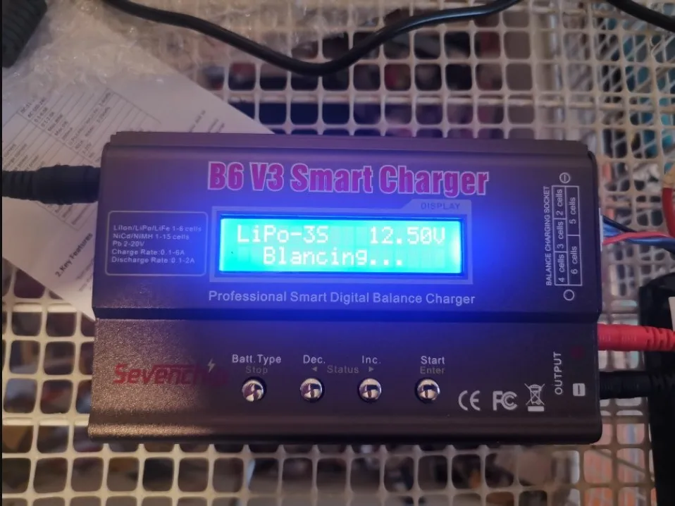 Входное напряжение постоянного тока: 11-18 вТок заряда 0,1-6.0AТок разряда 0,1-2.0AМощность заряда макс.80втМощность разряда макс.5втБалансовый ток 200 мАВозможность зарядки Li.Po,LiHv,Li.lon,Li.Fe:1-6cellsNiCd,NiMH:1-15cellsНапряжение аккумулятора Pb 2-24VПорт датчика температуры: ДаВстроенный баланс: даГабариты 135*86*32 мм (Д * Ш * В)