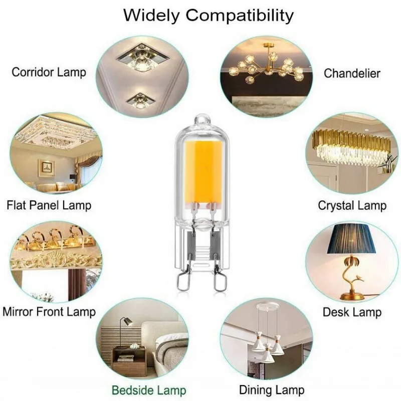 Супер длительный службный срок службы до 50000 часов. Тщательно решить вашу проблему частого замены ламп. Международный стандарт G9 G4 основание, подходит для всех G9 G4 светильник приспособление. Экологически чистый, не содержит токсичных веществ, не содержит ртути, не содержит УФ-или инфракрасного излучения. Больше защиты ваших глаз.