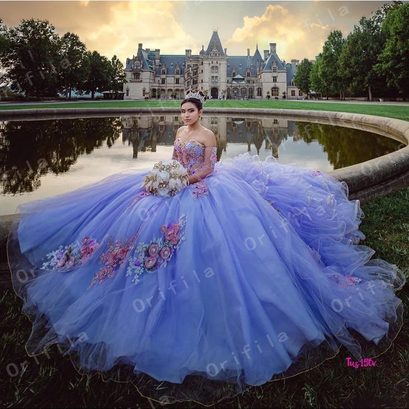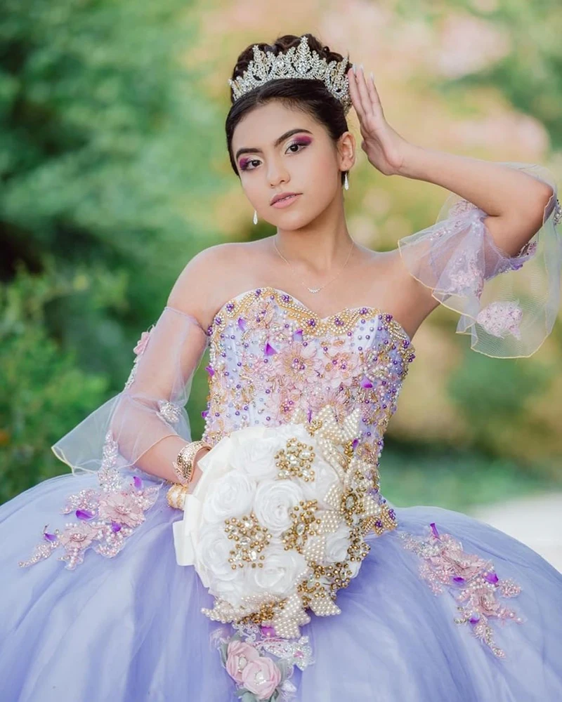 Фиолетовые платья с открытыми плечами и бусинами для Quinceanera, б...