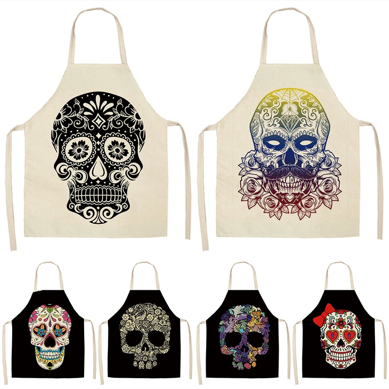 Фартук женский с рисунком черепа и скелета, кухонный аксессуар для выпечки, гаджет для женщин, для кафе