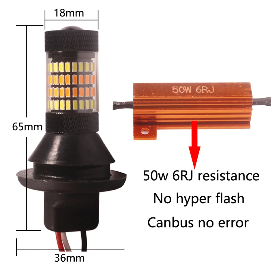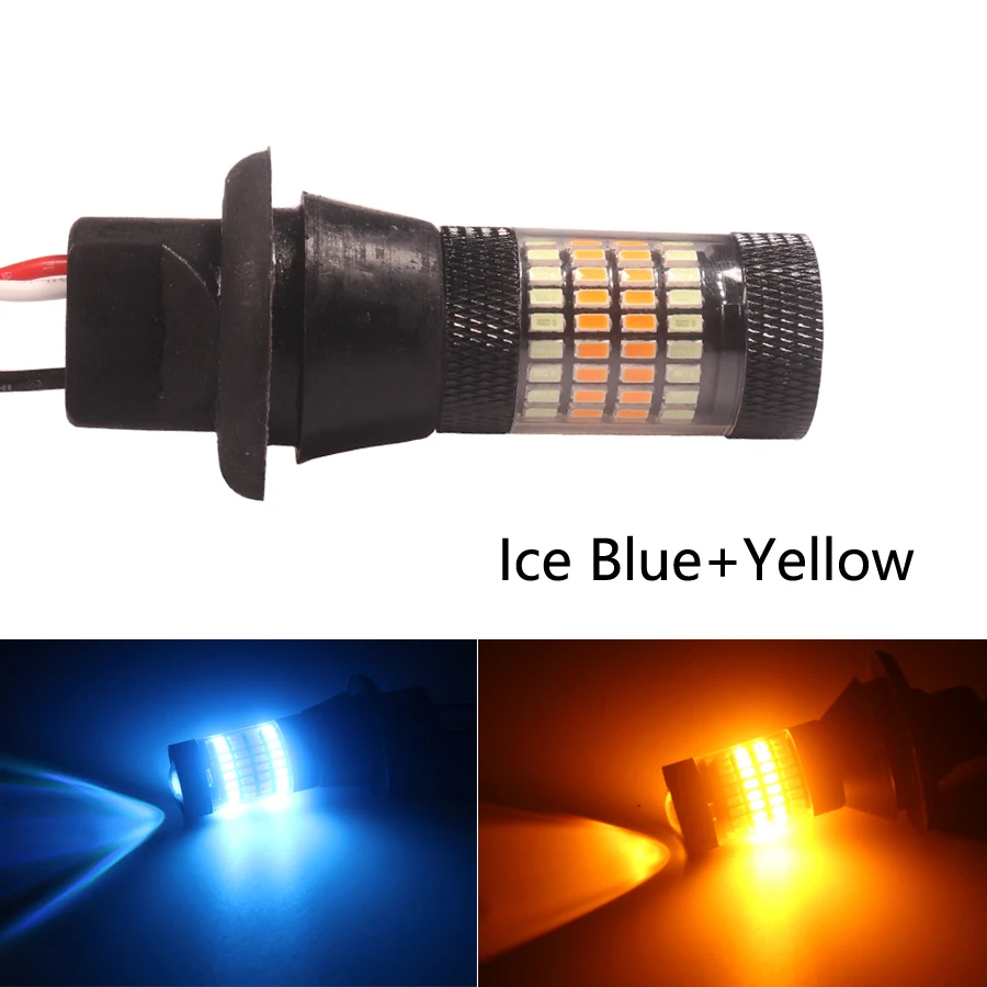 Светодиодные лампы NHAUTP T20 W21W, 2 шт., с защитой от вспышки, двухцветные, 1156, BA15S, BAU15S, P21W, PY21W, Canbus, указатели поворота, DRL, без ошибок, 96-Smd