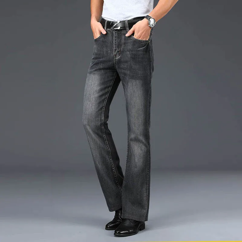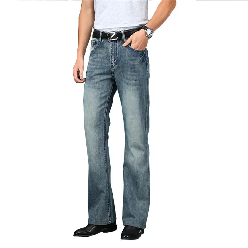 Джинсы-клеш мужские большого размера, свободные брюки-клеш с завыше...