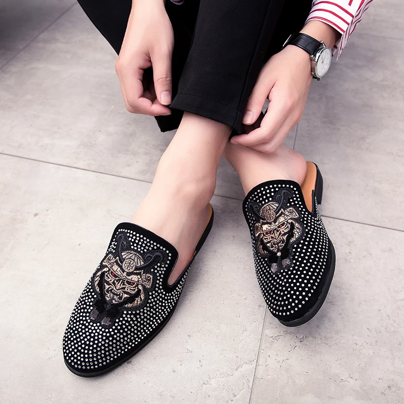 Мужские брендовые Дизайнерские повседневные туфли со стразами, роскошные деловые итальянские туфли 38 45, мужские полуботинки, Прямая поставка, мужские черные шлепанцы
