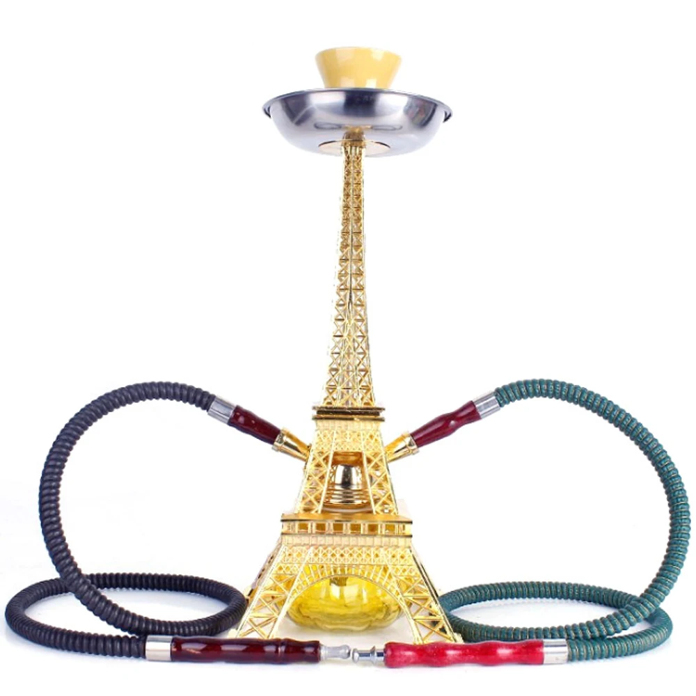 Название:1 шт.Двойной шланг кальян модель металлический кальян набор башня форма кальян керамическая чаша наргиле для баров и клубов аксессуары для курения