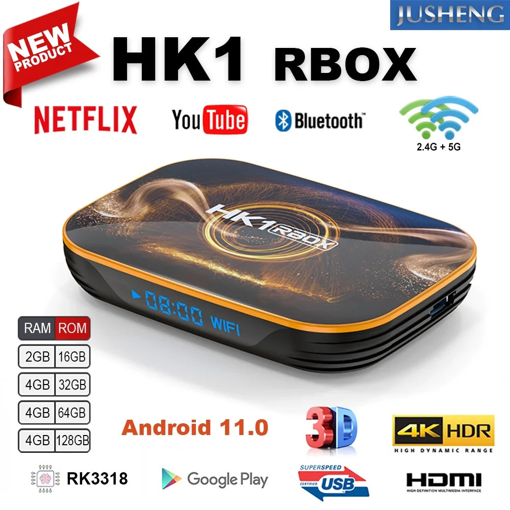 Приставка Смарт-ТВ HK1 RBOX R1, Android 11,0, 4 + 64 ГБ, USB3.0, 1080P, H.265, 4K, 60 кадровс