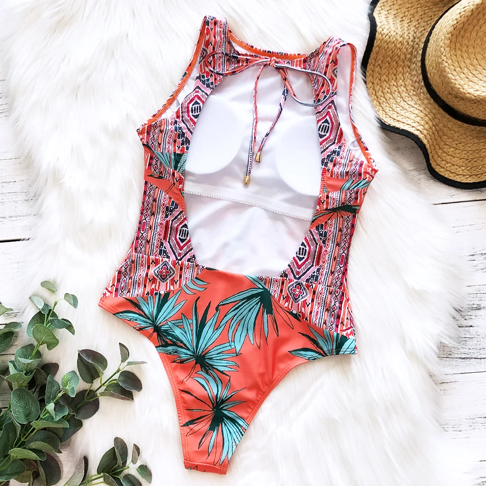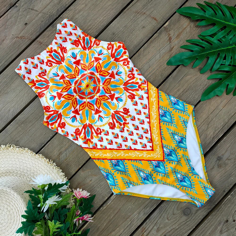 Слитный купальник с принтом, новинка 2021, купальник пуш-ап, женские винтажные Ретро купальные костюмы, боди, пляжная одежда, монокини с открытой спиной