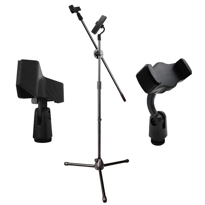 Микрофонная стойка журавль Pro-21 с держателем прищепкой для микрофона и держателем для телефона