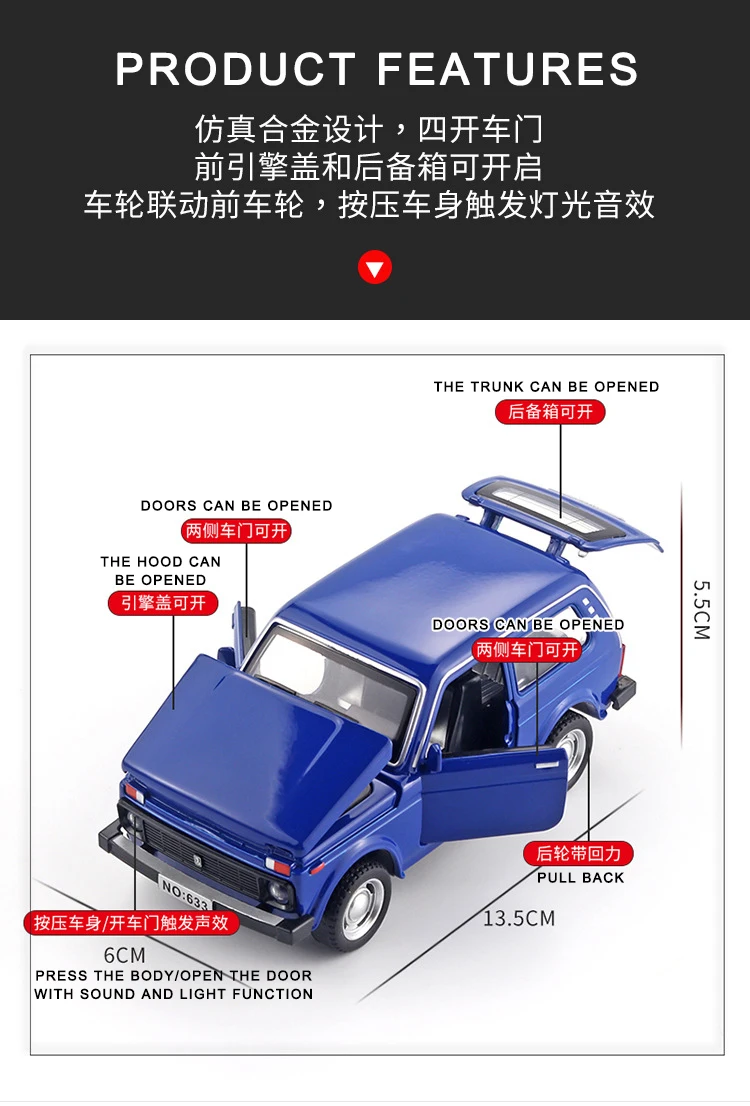Классическая игрушечная машинка в масштабе 1:32, Лада нива, металлическая модель автомобиля из сплава, литой модели для детей, миниатюрная коллекция в масштабе, подарки для мальчиков, для детей icon star icon star icon star icon star icon star