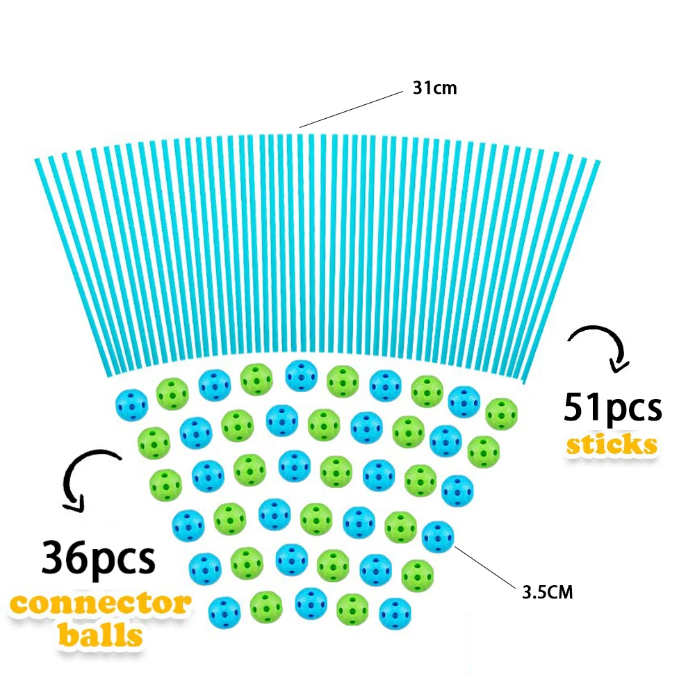 3, gemakkelijk te Bouwen & Duurzaam: Gemaakt met solide en premium plastic, steek en twist de staven in de ballen, builder verbinden in een paar seconden en gemakkelijk demonteren, geten restructuten. Komen met een opbergtas, draagbare voor indoor en outdoor activiteiten.