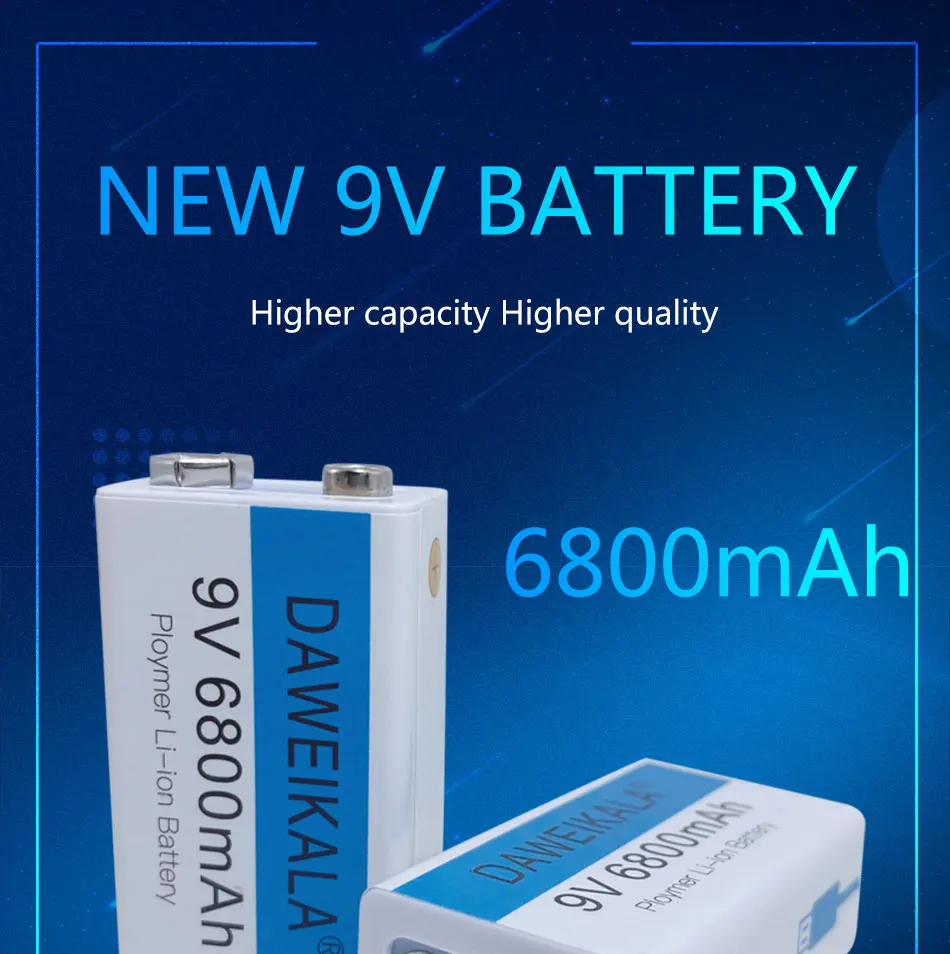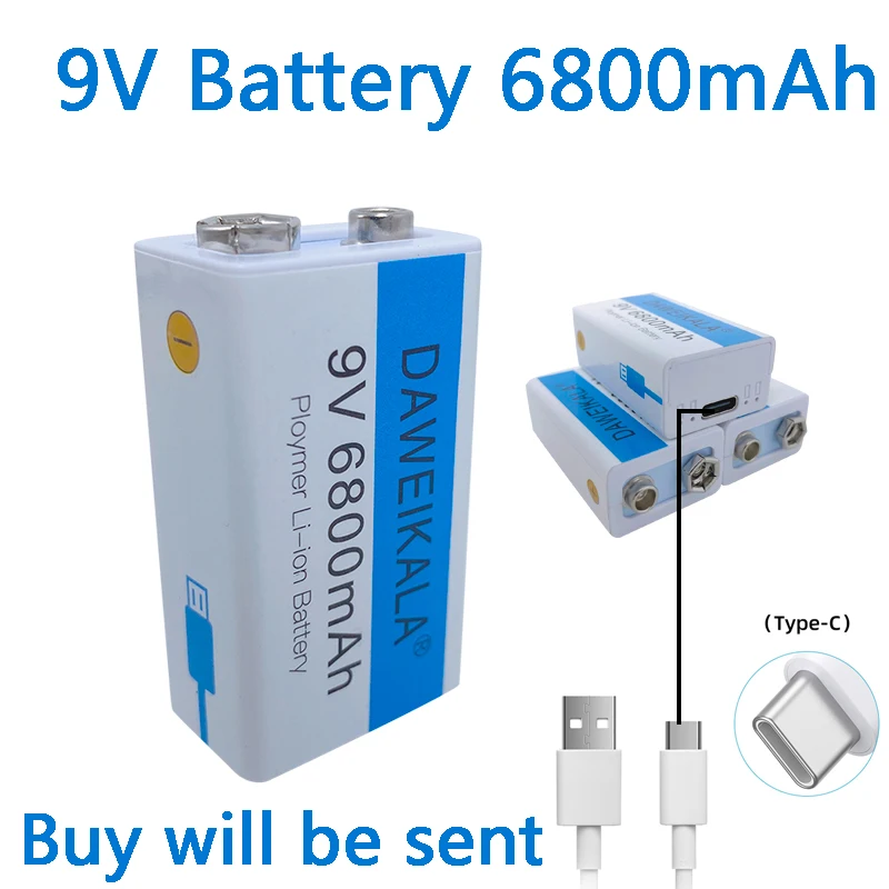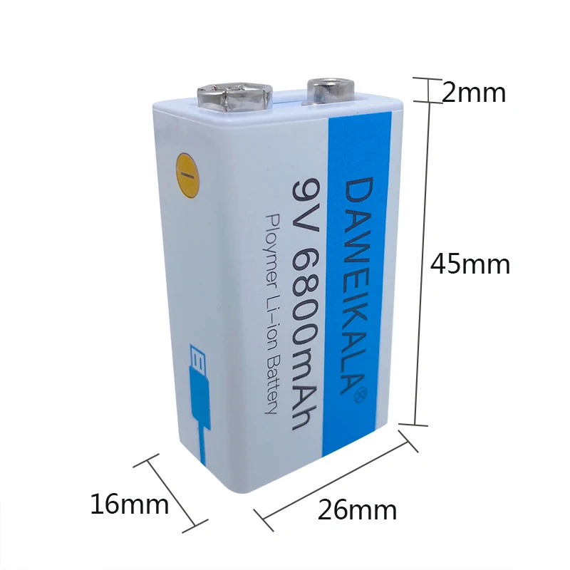 Аккумуляторная батарея 9 В, литий-ионная батарея 6800 мАч, литиевая батарея Micro USB 9 В для мультиметра, микрофона, игрушек, зарядный кабель USB