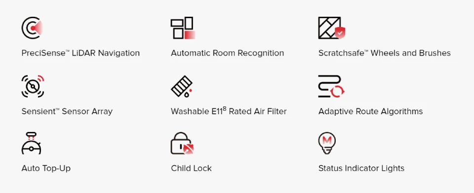 Точная навигация LiDAR создает подробные карты вашего дома и идентифицирует ваши комнаты до четырех уровней.