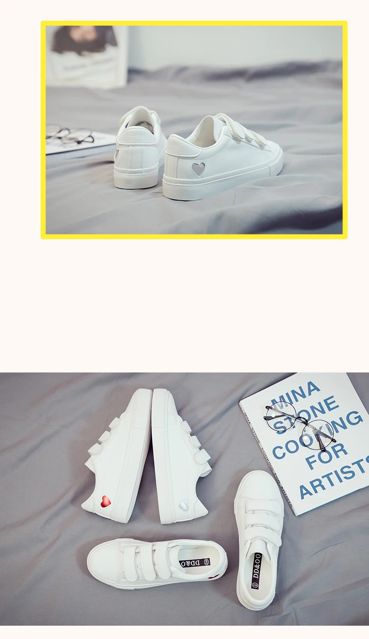 Женские кожаные кроссовки, Белые Повседневные кроссовки из искусственной кожи на высокой платформе с сердечками, весна 2021