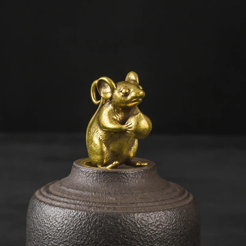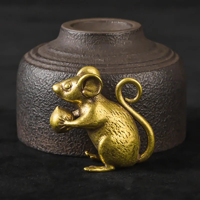Медная Милая мышь, персиковые миниатюрные статуэтки, украшение для чайного питомца, поделки, латунная статуя животного, крыса, аксессуары для украшения дома