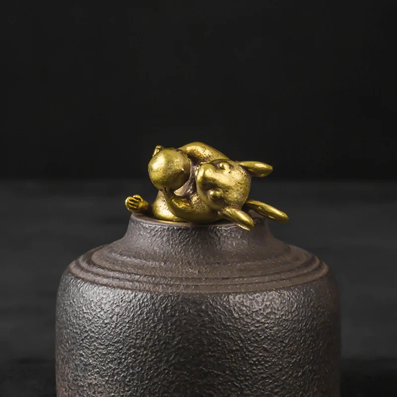 Медная Милая мышь персик, миниатюрные фигурки, чайный столик для домашних животных, украшение для украшения, латунные животные, статуя крысы, украшения для дома