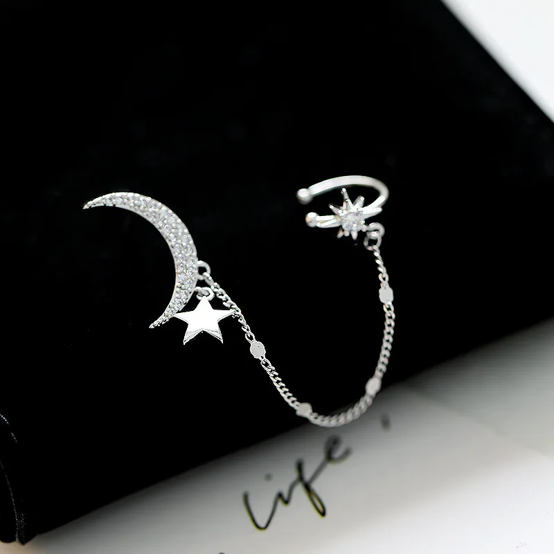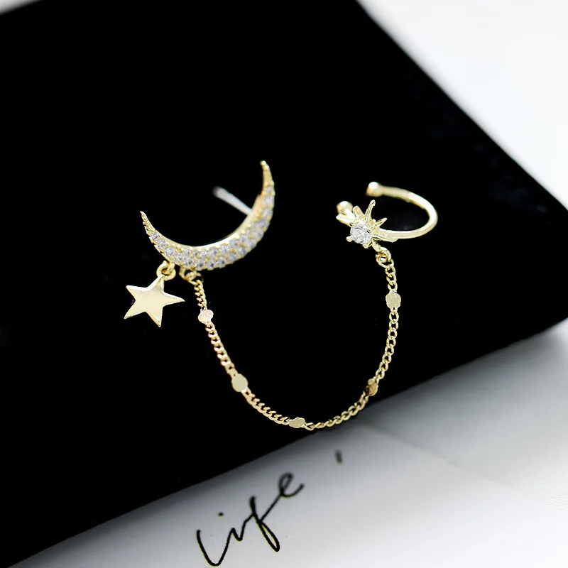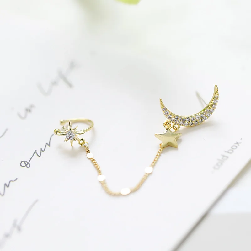 Женские серьги-клипсы SIPENGJEL, длинные серьги-гвоздики с подвеской в виде луны и звезд, вечерние ювелирные изделия