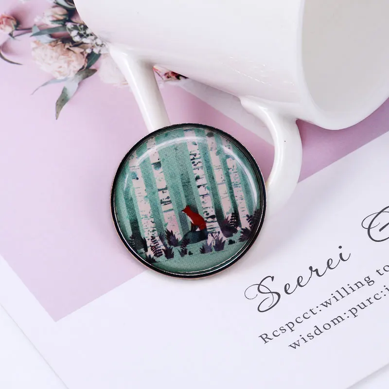 Значок с изображением Красной лисы в лесу, Весенняя брошь на лацкан с изображением животных, рыжей лисы, природы, фэнтези, ярких животных из дикой природы, акварельных красок