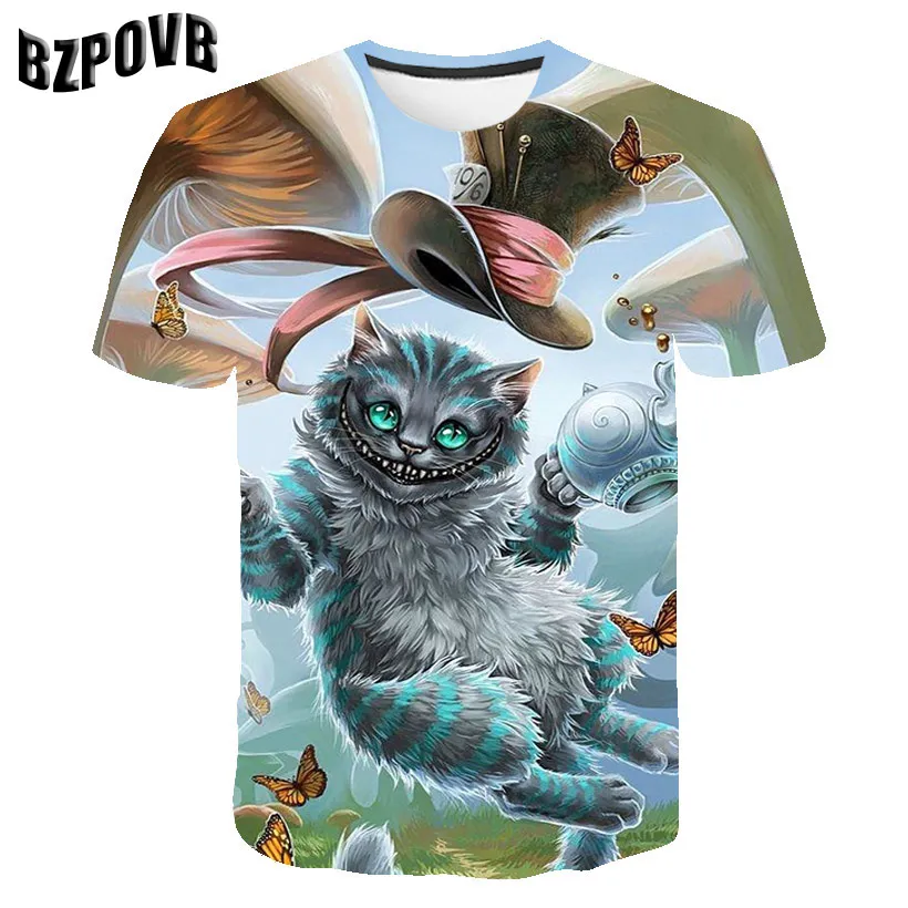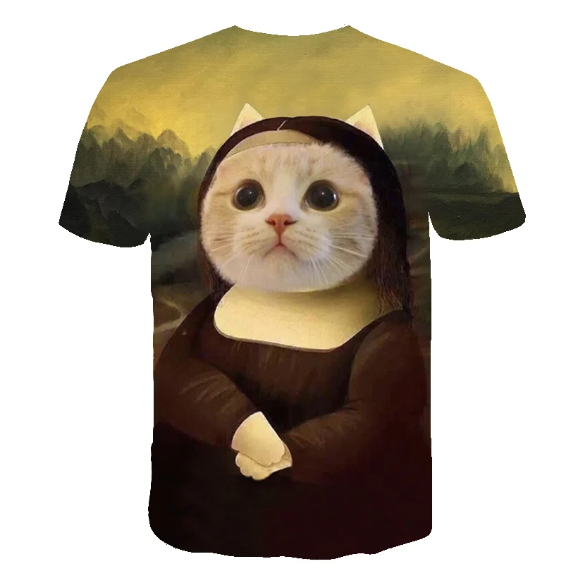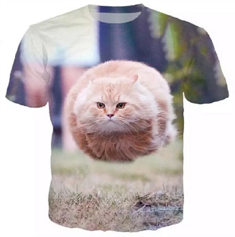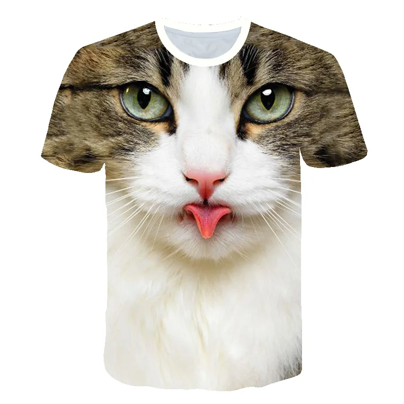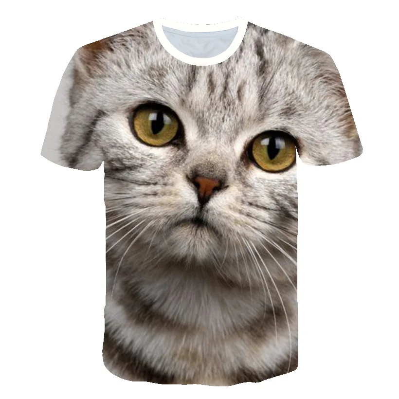 Футболка с 3D рисунком животных для детей, мальчиков и девочек, летняя футболка с коротким рукавом и изображением кошки, забавная футболка, детская одежда