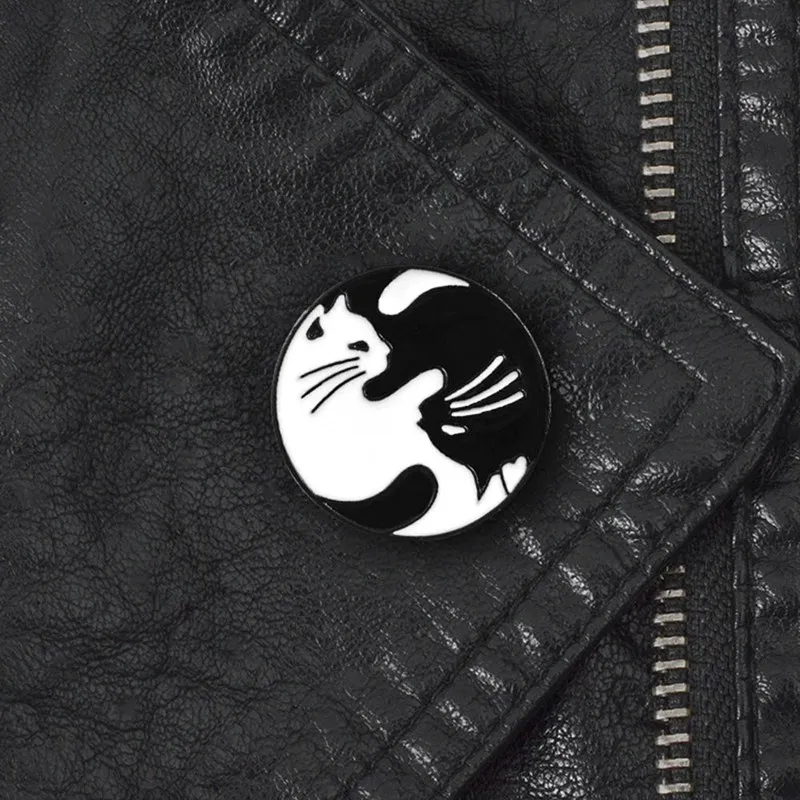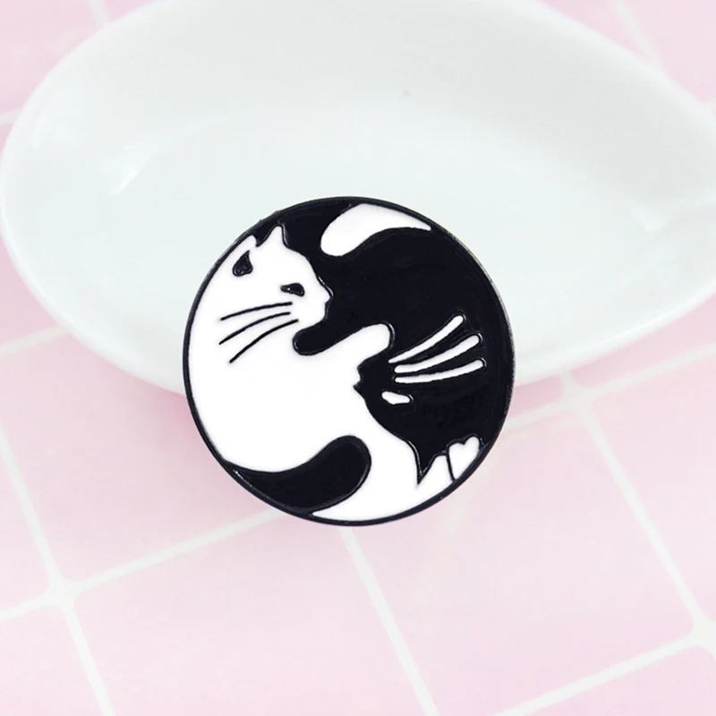 Инь Кот шпильки черный, белый цвет два Броши с котами Инь значки в виде кота ювелирное украшения с кошками