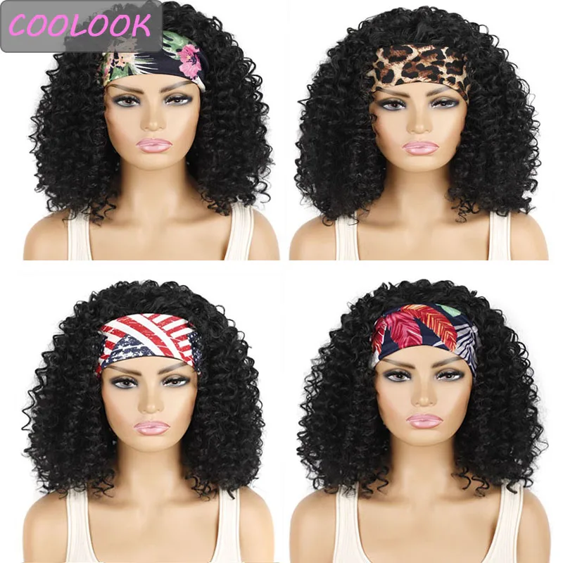 19 дюймов тюрбан с глубокой волной, парик, афро кудрявые вьющиеся головные парики, парики для черных женщин, термостойкий афро-вьющийся парик с накладкой на голову