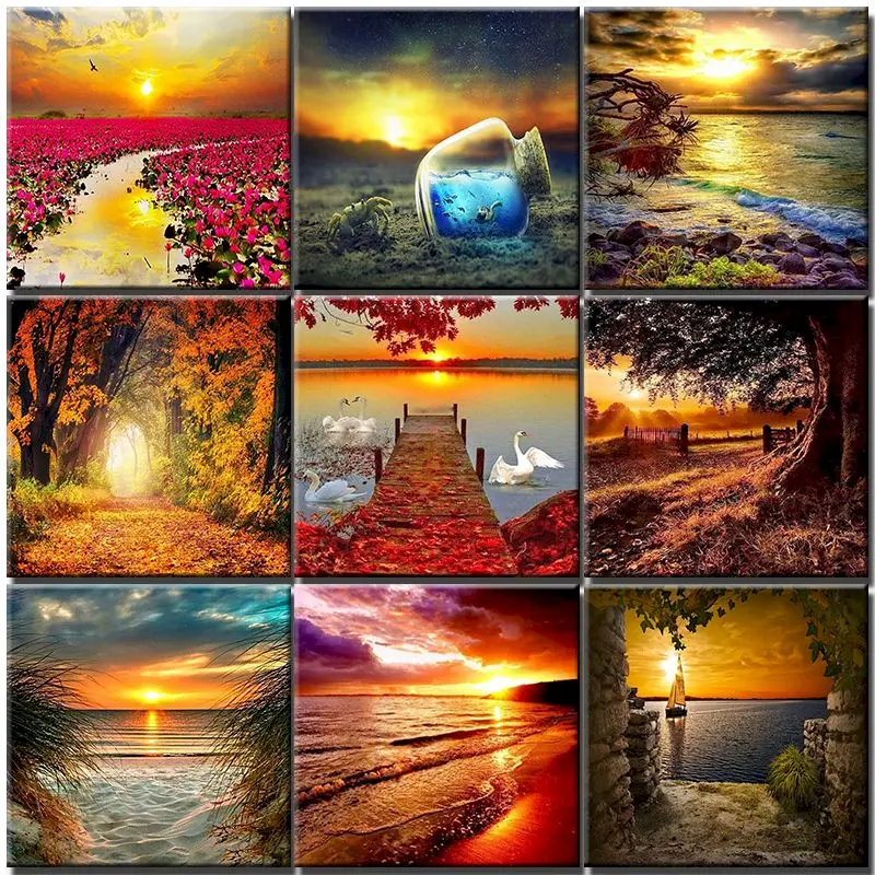 GATYZTORY Алмазная вышивка полный квадратный закат 5D алмазная карт...