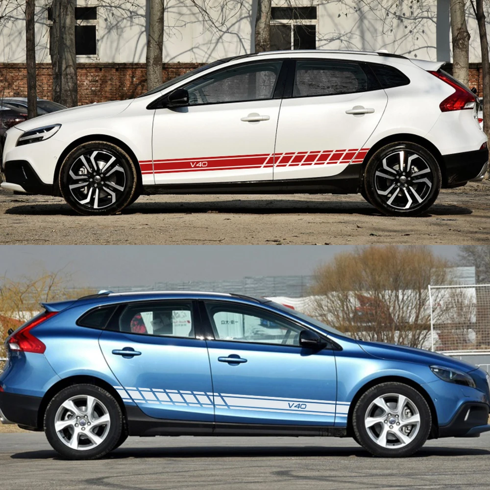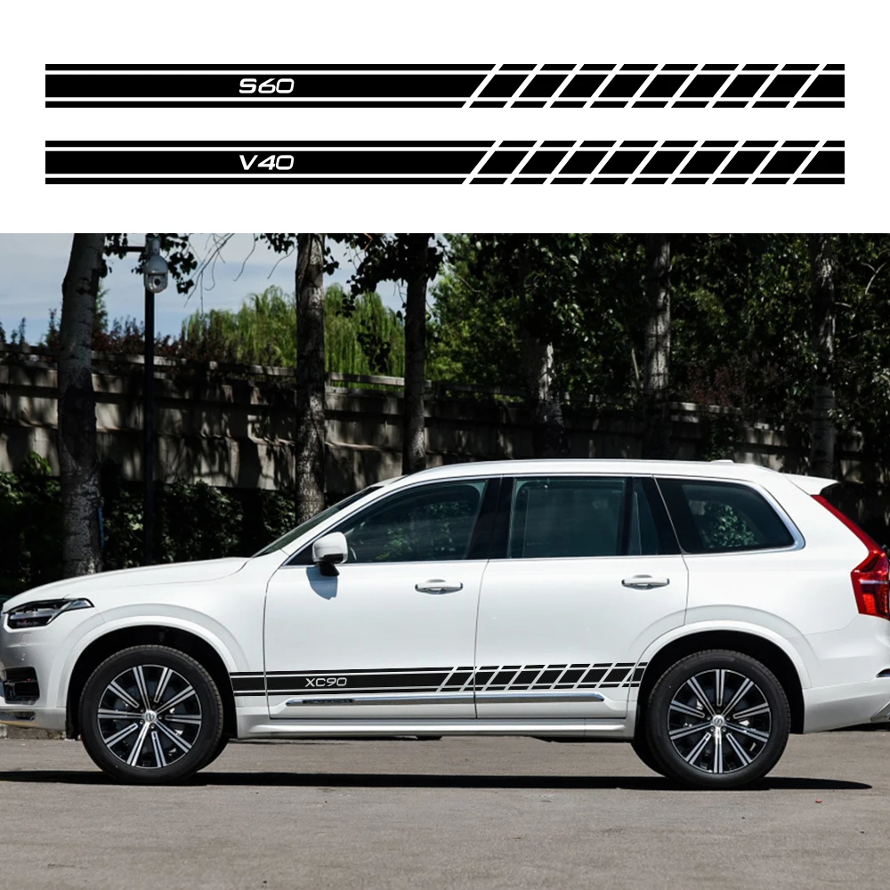 Виниловые полосатые наклейки на боковую юбку двери автомобиля для Volvo S60 XC90 V40 V50 V60 S90 V90 XC60 XC40 AWD T6, аксессуары для декора в автомобильном стиле