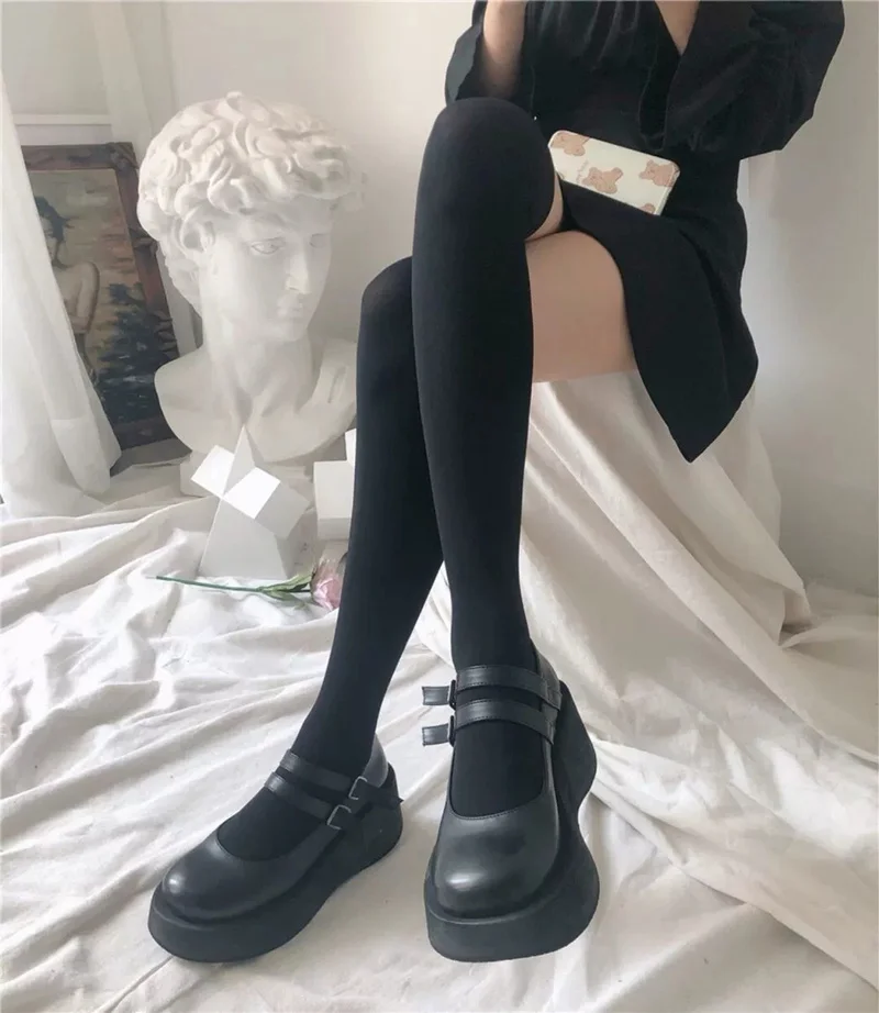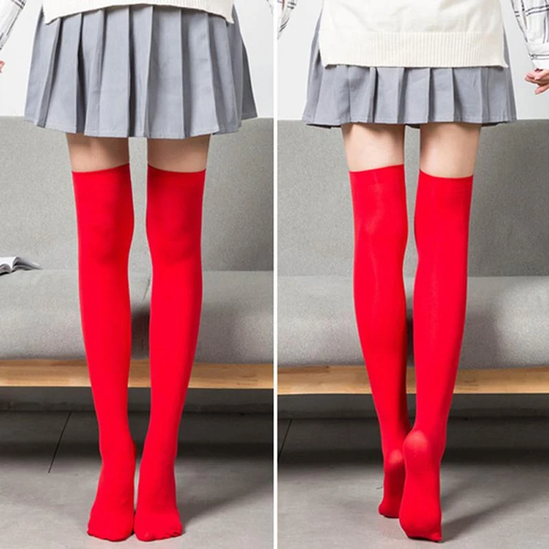 Однотонные высокие эластичные бархатные чулки выше колена, женские чулки в японском милом стиле до бедра, эластичные длинные чулки черного и белого цвета