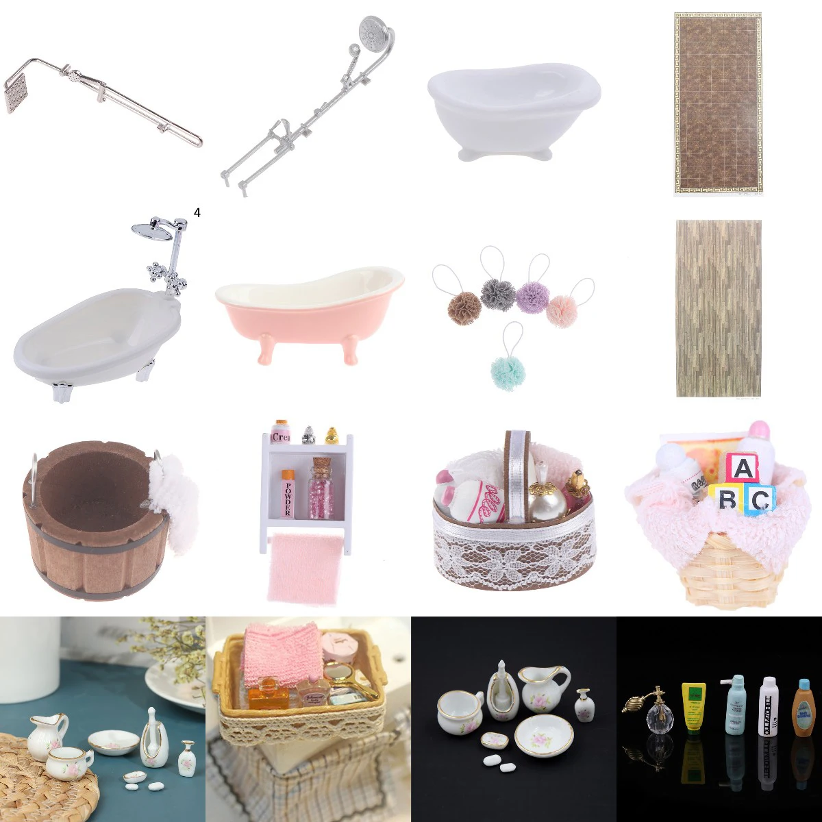 Мини-игрушка для кукольного домика, набор для ванной, вешалка для полотенец, смеситель для душа, ванна, мебель для кукольного домика, игрушки для детей, аксессуары