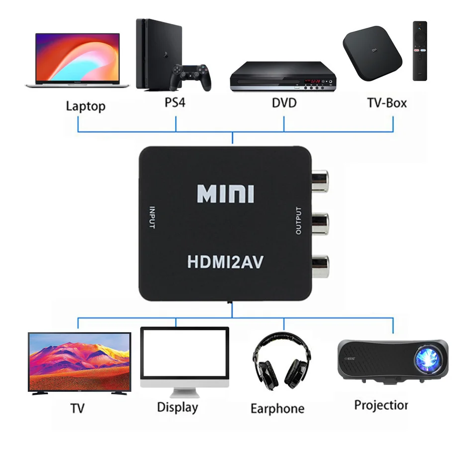 HD HDMI-совместимый с RCA преобразователем AVCVSB LR видеобокс HD 1080P 1920*1080 60 Гц HDMI2AV поддержка NTSC PAL выход HDMIToAV