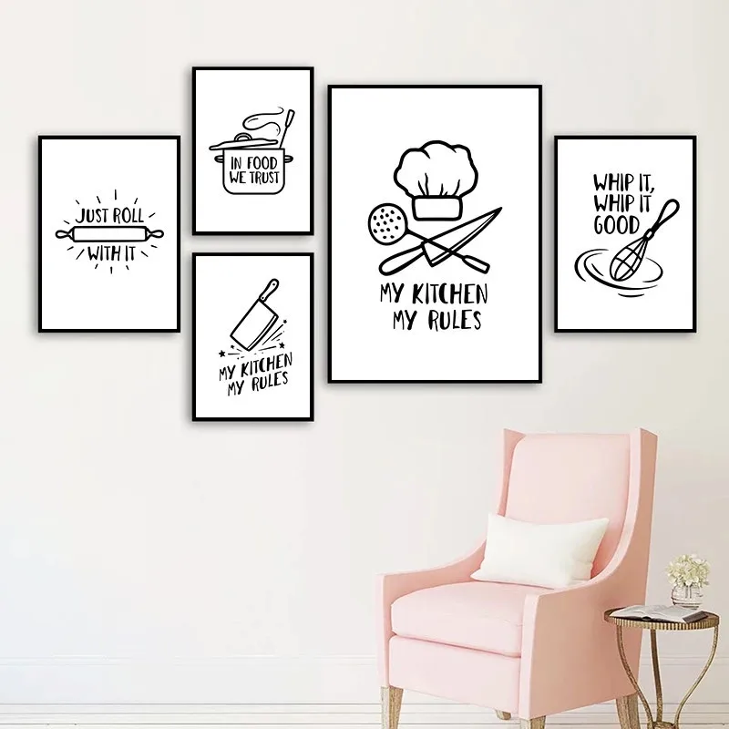 Картина черно-белая Готовим с любовью на кухне, художественная стена с цитатой холст, постеры, украшение для кухни, столовой