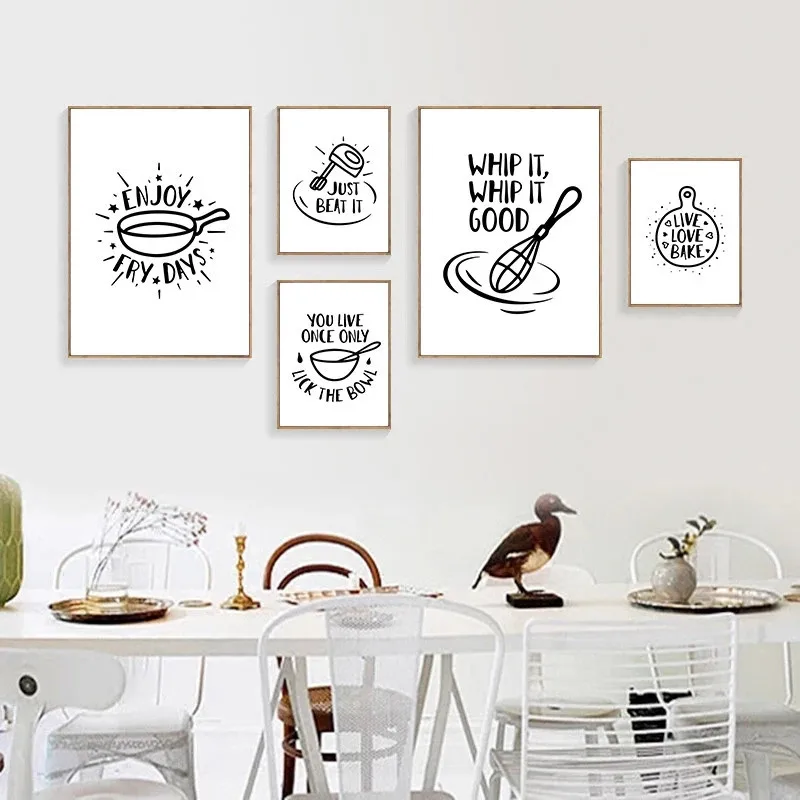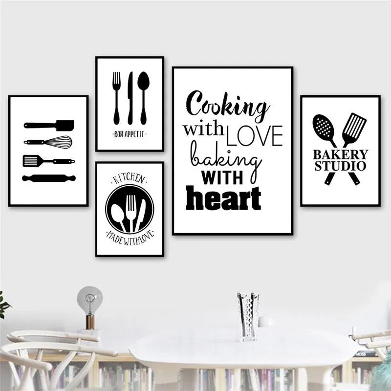 Черно-белый кулинарный с любовью кухонный художественная стена с ци...