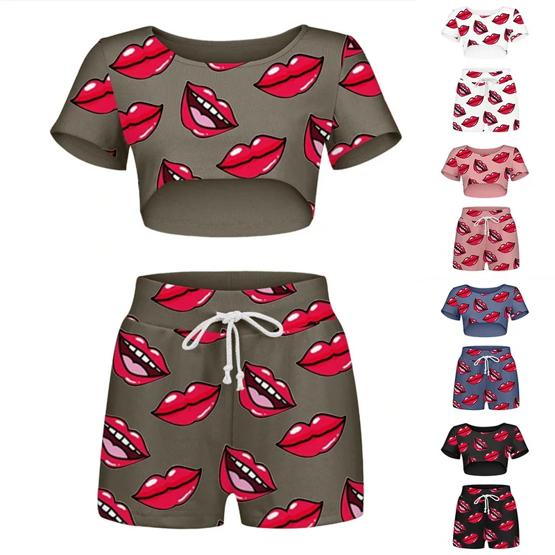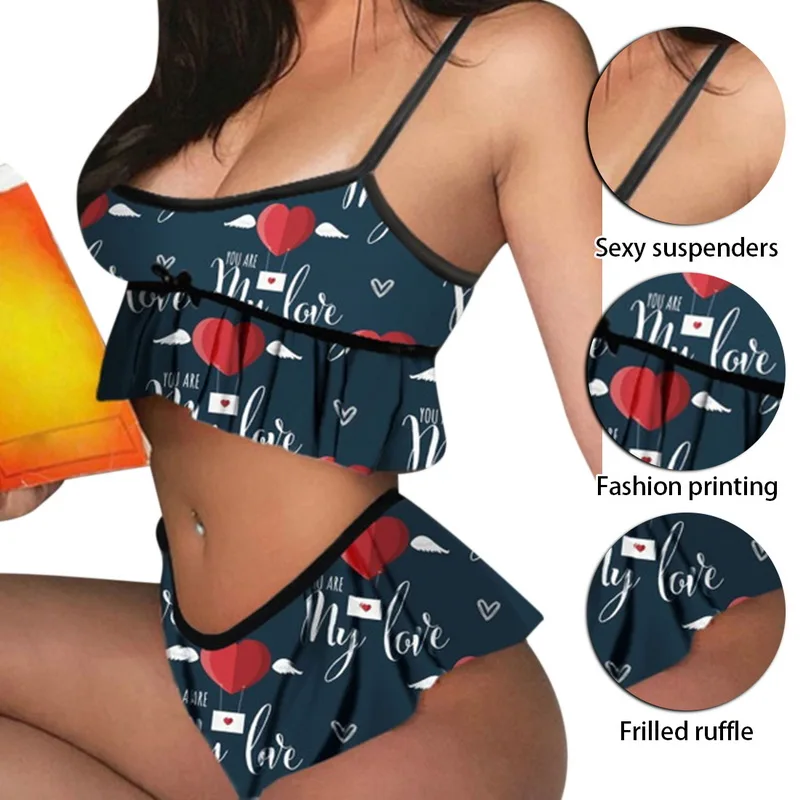 2021, популярная Пижама, Женская майка, одежда для сна, женская пижама с принтом сердца, ночная рубашка с оборками и воланами, комплект нижнее белье-шорты, домашняя одежда