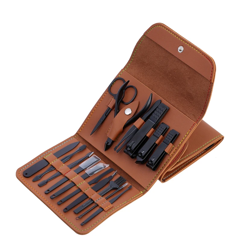 Этот маникюрный набор покрывает очень полезные инструменты, которые могут удовлетворить все, что вам нужно для профессионального ухода за ногтями. Такие как пинцет, ножницы для омертвевшей кожи, амбушюры, иглы для акне и так далее.