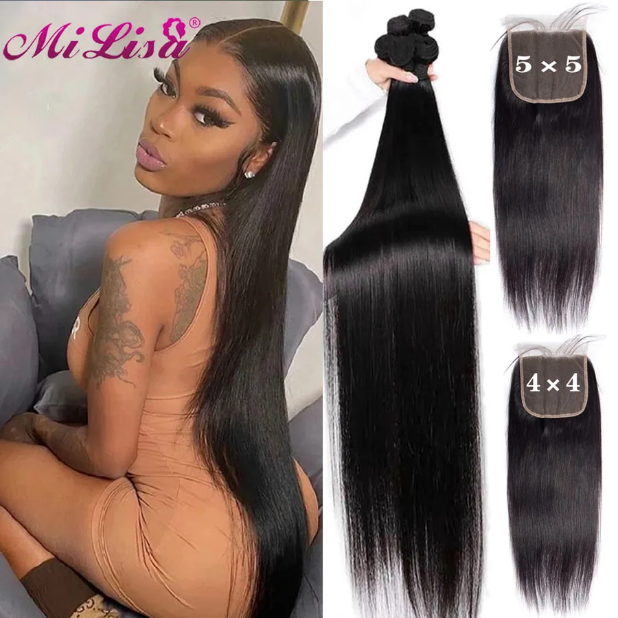 Hair StyleMalaysian Straight Hair Bundles Deals 4x4 lace closure with bundles