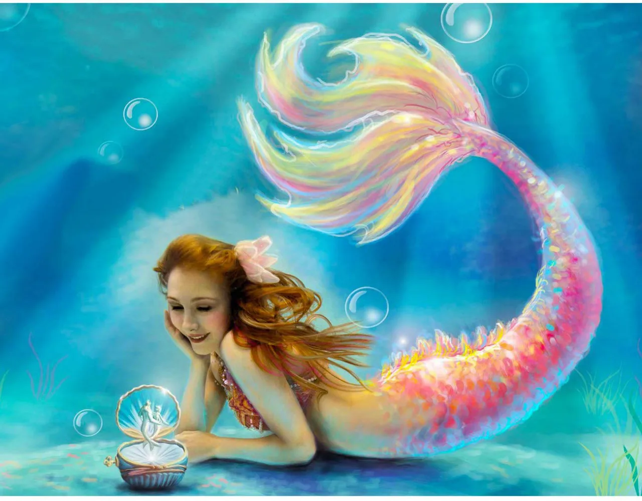 Набор для вышивки крестиком русалка, алмазная живопись круглой форм...