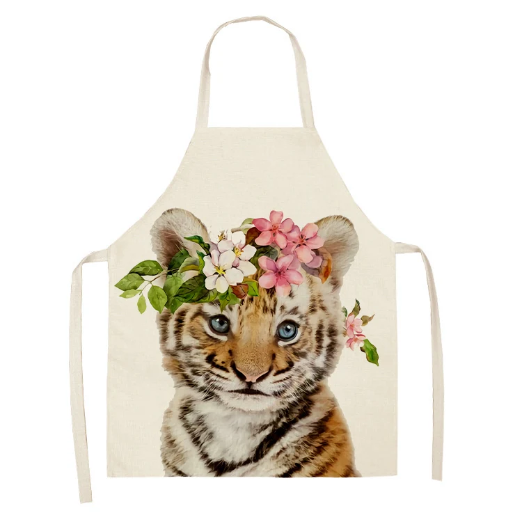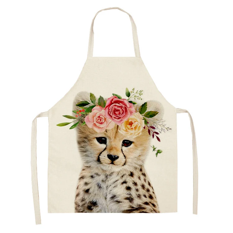 Фартук женский из хлопка и льна, с леопардовым принтом и цветочным ...
