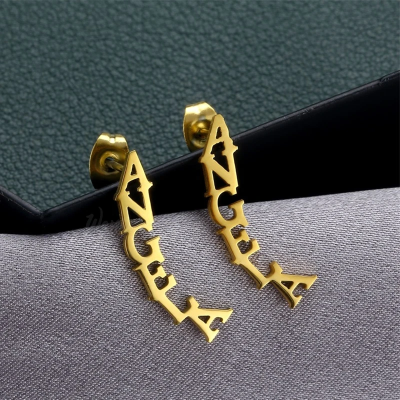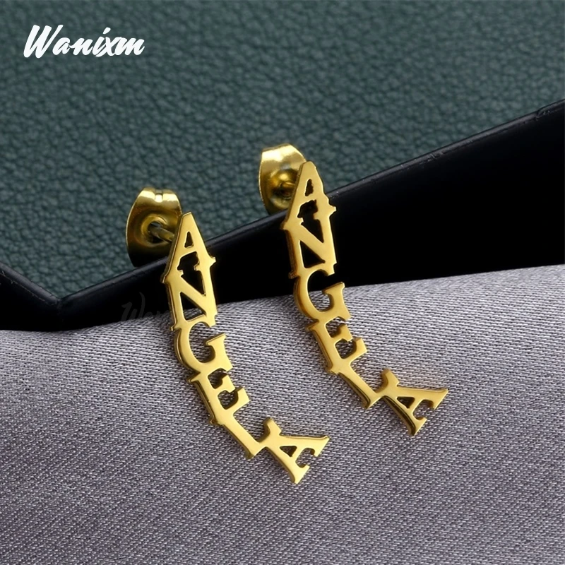 Индивидуальные персонализированные серьги с надписью из нержавеющей...