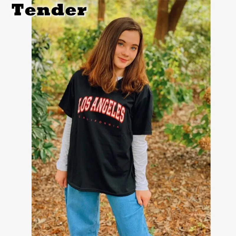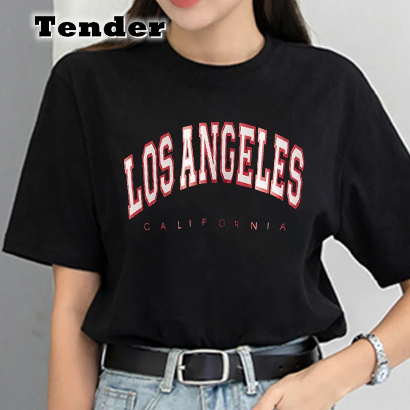 2021 модная женская футболка с коротким рукавом в стиле Лос-Анджелеса, американская женская футболка с графическим рисунком, летние топы Y2k, Повседневная футболка большого размера