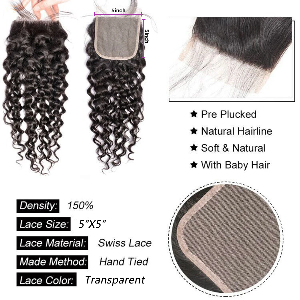 Волнистая 360 кружевная Фронтальная застежка, человеческие волосы, вьющиеся в воде, 360 Fronal, влажные и волнистые, 5x5, прозрачная HD кружевная застежка, 13x4 фронтальная