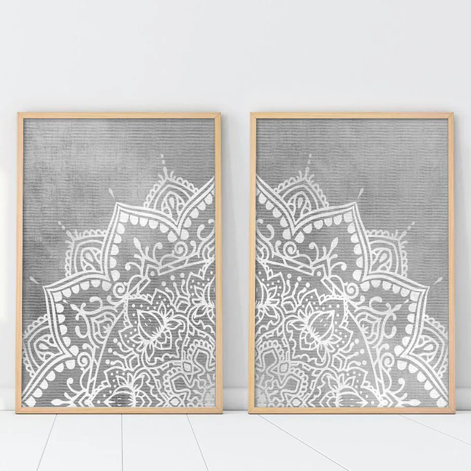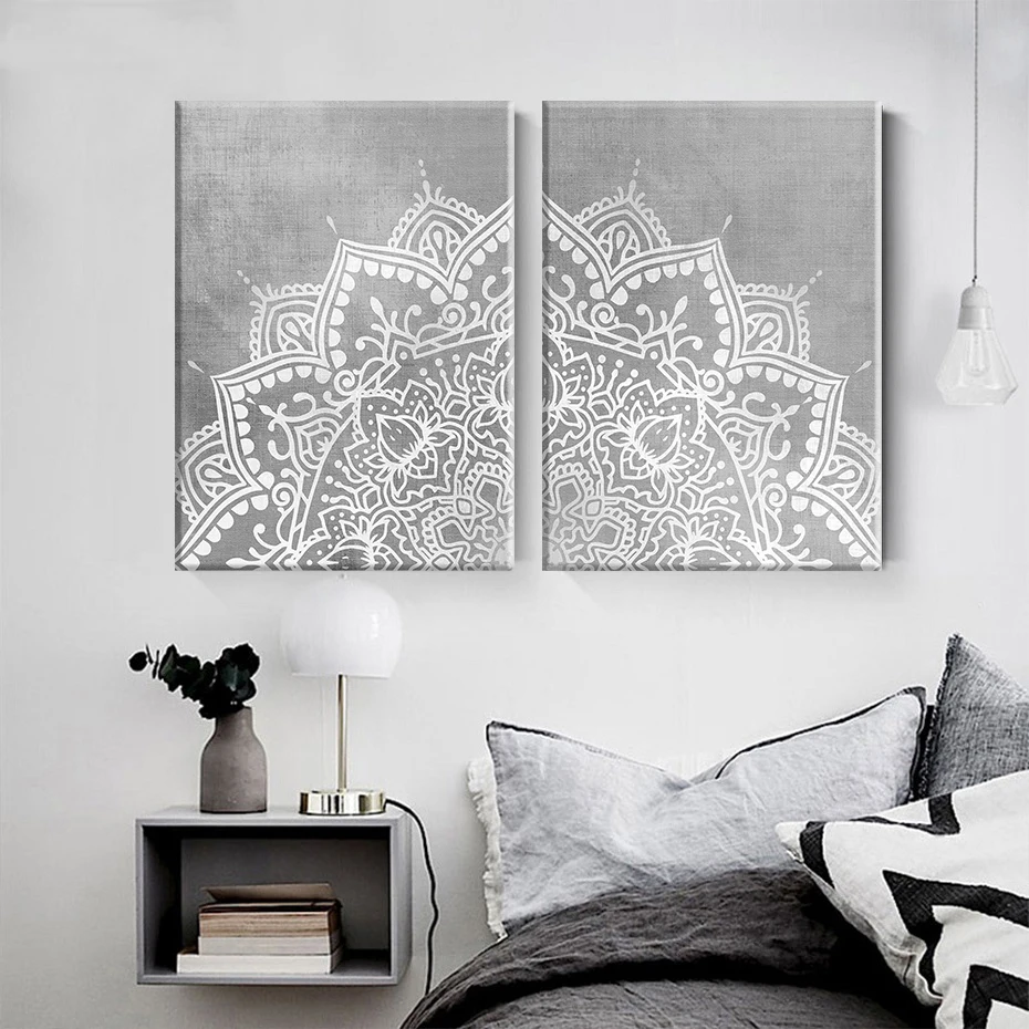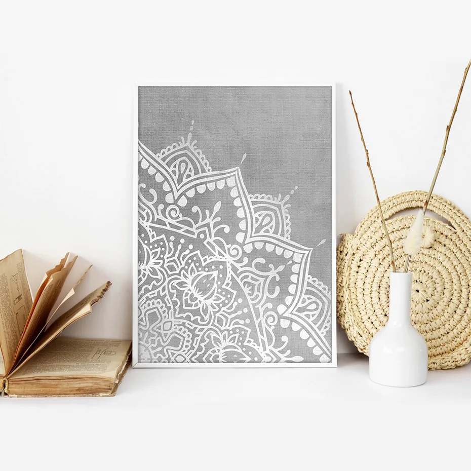Серо-белая Мандала Цветок настенное художественное изображение бежевый богемный холст живопись плакат картина Йога гостиная домашний интерьер Декор