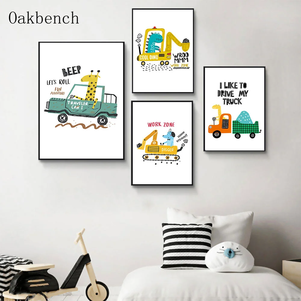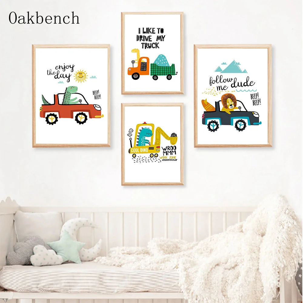 С принтом из мультфильма город автомобиль Wall Art Холст Картина драйвер Лев динозавр плакаты с изображением жирафа и принтами для малышей и детей постарше номер Nordic домашний декор