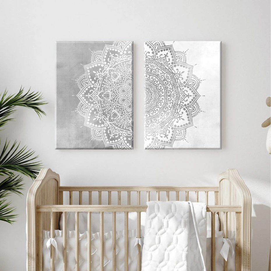 Богемный узор Мандала настенная печать бежевый серый белый холст ка...
