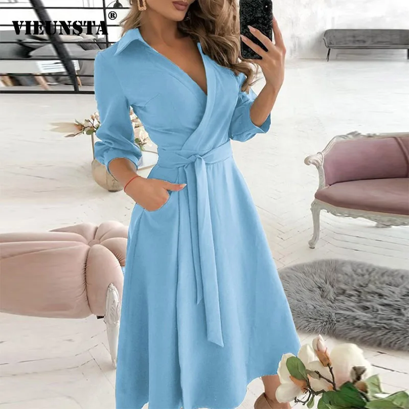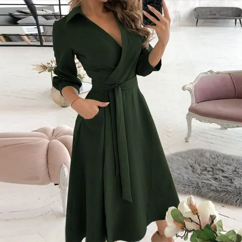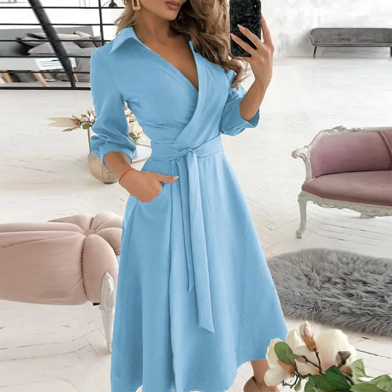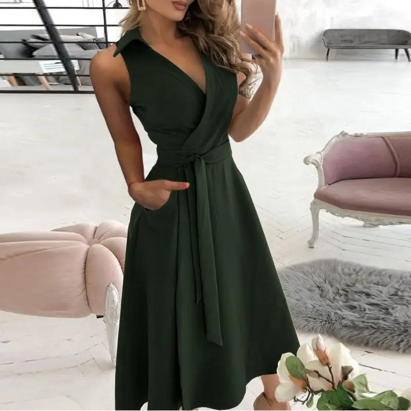 Женское длинное платье-рубашка без рукавов, с открытыми плечами и глубоким V-образным вырезом, весеннее однотонное платье-трапеция с поясом, 2021