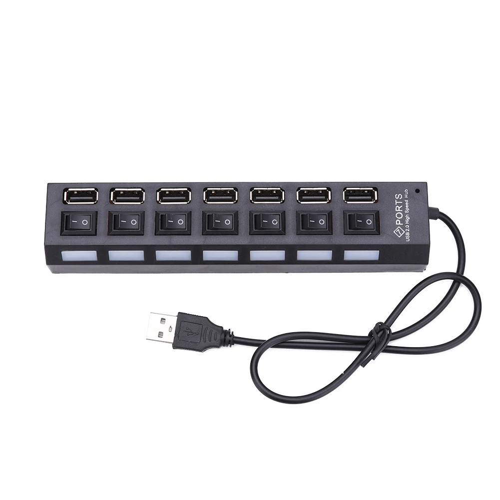 Высокоскоростной USB-концентратор с 7 портами, USB 2,0, разветвитель, адаптер вклвыкл, переключатель для компьютерной периферии