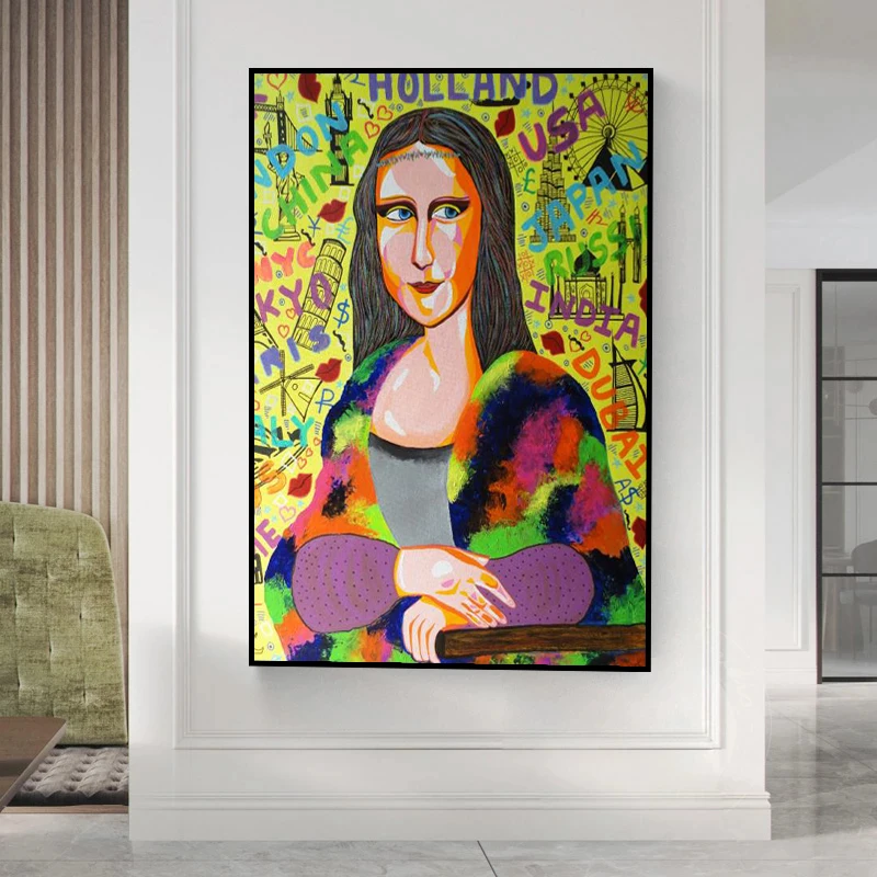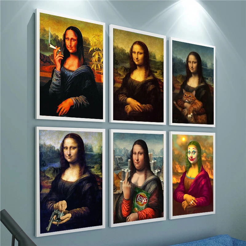 Картина с изображением забавной Моны Лизы, питьевой, курительной газеты, декоративная копия Леонардо да Винчи, используется для украшения стен дома