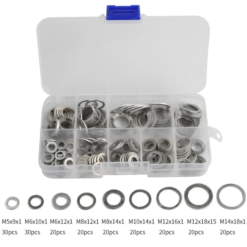 Набор прокладок алюминиевых плоских шайб M5M6M8M10M12M14, 200280450...