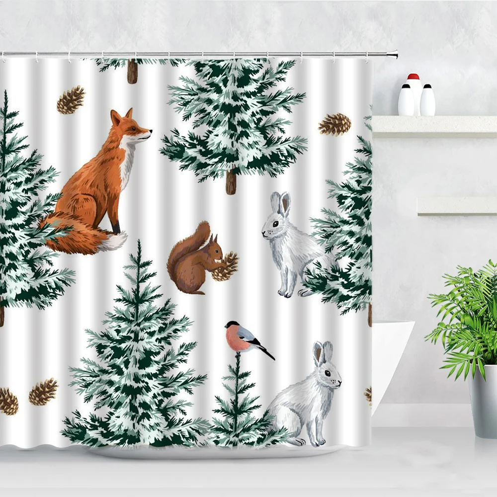 Зимний лес, рождественские занавески для душа, зеленая Рождественск...