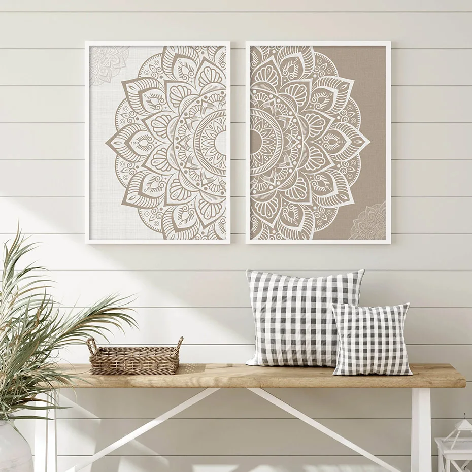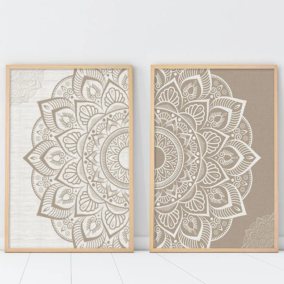Коричневый цветочный узор в виде мандалы настенный художественный принт бежевого цвета в богемном стиле холст картина плакат картина Йога Гостиная; Эти модные тапочки отлично дополнят интерьер любого дома и не будут скользить по Декор