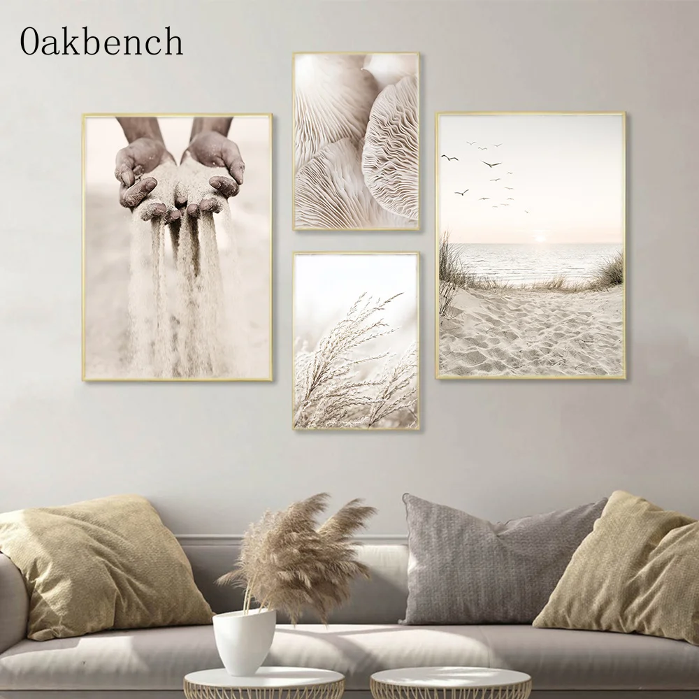 Картина на холсте с изображением бежевого одуванчика, травы, природы, плакаты и принты в стиле бохо, настенные картины для гостиной, современный интерьер, домашний декор