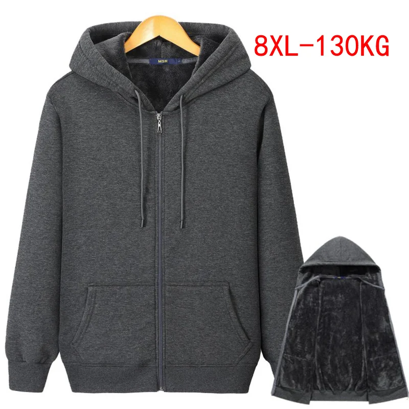 Для мужчин; Сезон зима-осень размера плюс молния свитер с капюшоном размера плюс 5XL 6XL 7XL 8XL толстый теплый серый, черный, темно-синий; Куртка высокого качества
