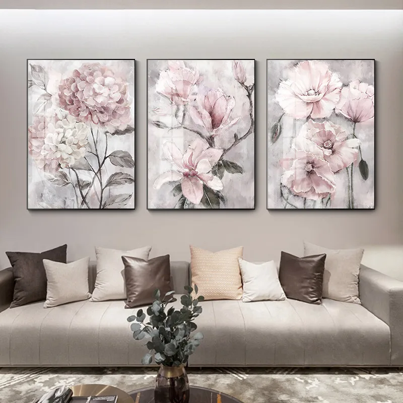 Картина на холсте с изображением розовых цветов в скандинавском стиле, Современное украшение для дома и гостиной